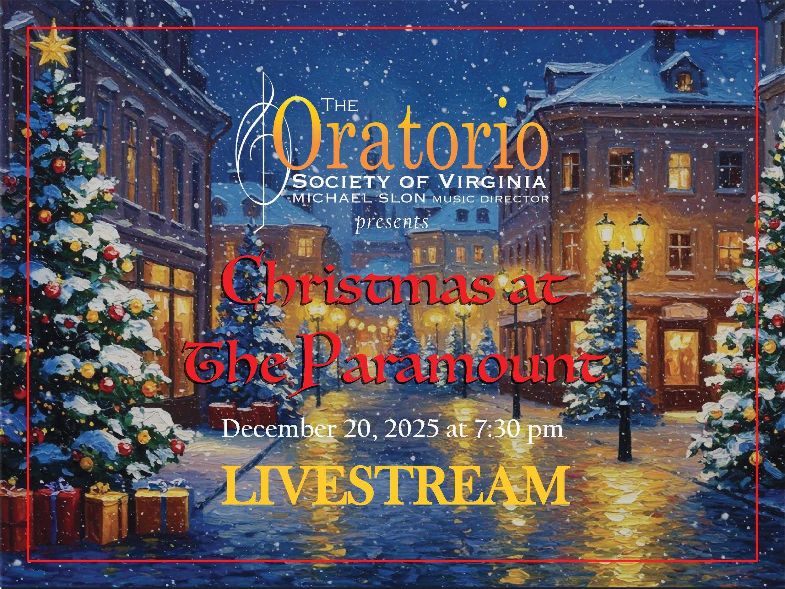 The 100+-voice Oratorio Society chorus under the baton of Music Director, Michael Slon, and joined by string orchestra, organ, and guest soloists present “Christmas at The Paramount.”