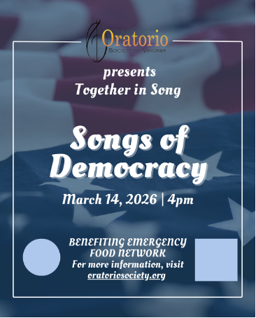 Join the Oratorio Society's 100-voice chorus, community singers from our morning workshop, and guest youth choir Voces Laetae for an unforgettable evening marking America's 250th anniversary. Presented in partnership with VA250, Virginia's commission for the nationwide America250 initiative, this program celebrates the bipartisan values at the heart of our democracy.